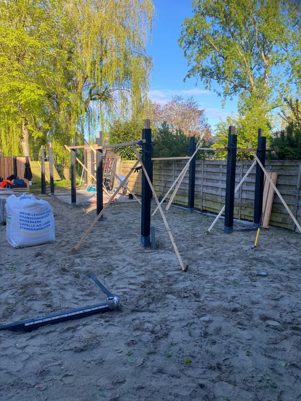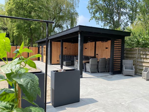 Zo blij met ons tuinhuis iedere keer als we de tuin in kijken worden we er zo blij van.